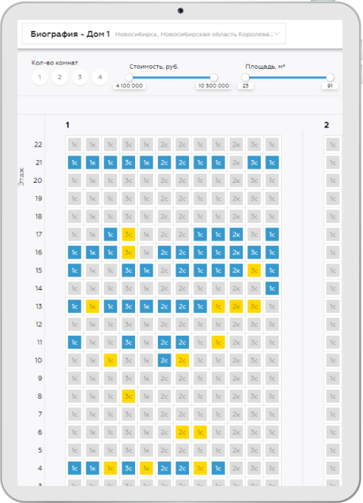 Realty — полный комплекс инструментов для визуализации и управления недвижимостью. Вы получаете актуальную шахматку, мощные инструменты продаж, включая ипотечный калькулятор, генератор презентаций, а также автоматизацию выгрузки объявлений.
