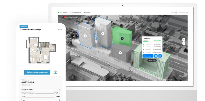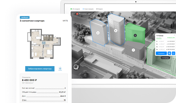 Realty — полный комплекс инструментов для визуализации и управления недвижимостью. Вы получаете актуальную шахматку, мощные инструменты продаж, включая ипотечный калькулятор, генератор презентаций, а также автоматизацию выгрузки объявлений.